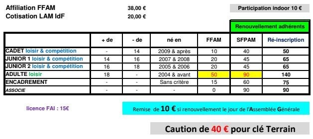 Cotisations SFPAM - FFAM saison 2025 2026
